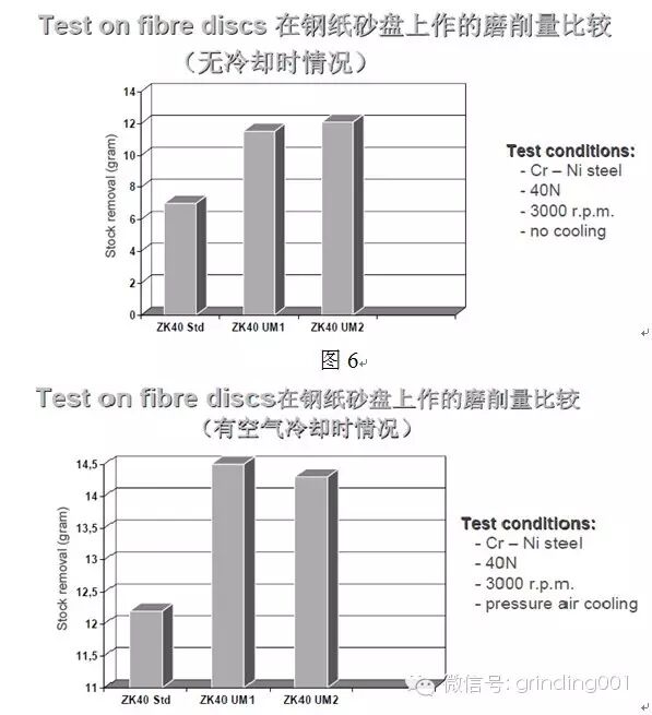 UM2制作鋼紙砂盤(pán),進(jìn)行無(wú)冷卻條件下磨削試驗,結果見(jiàn)圖6。上述三種鋼紙砂盤(pán)在空氣冷卻情況下,進(jìn)行磨削試驗,結果見(jiàn)圖7。